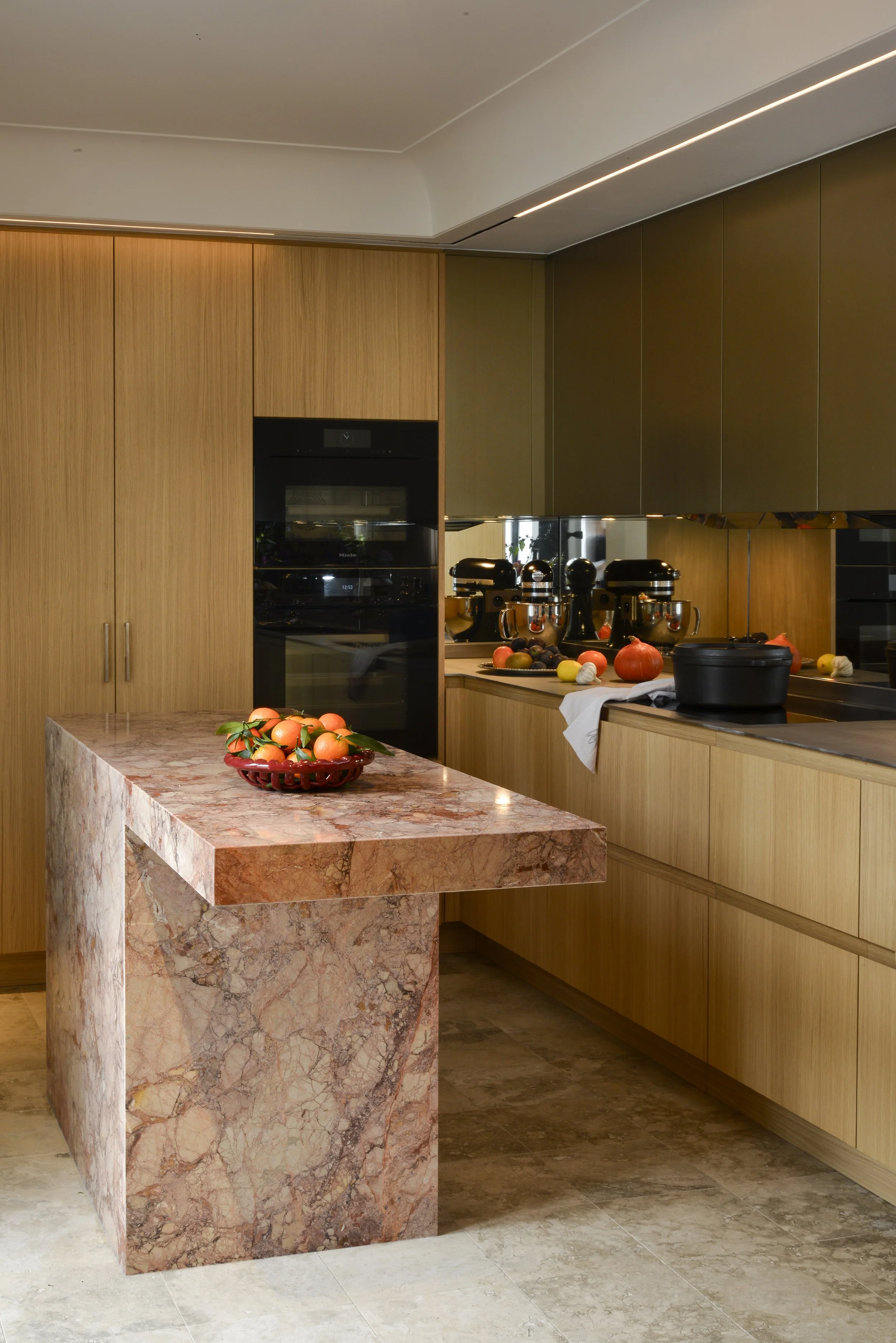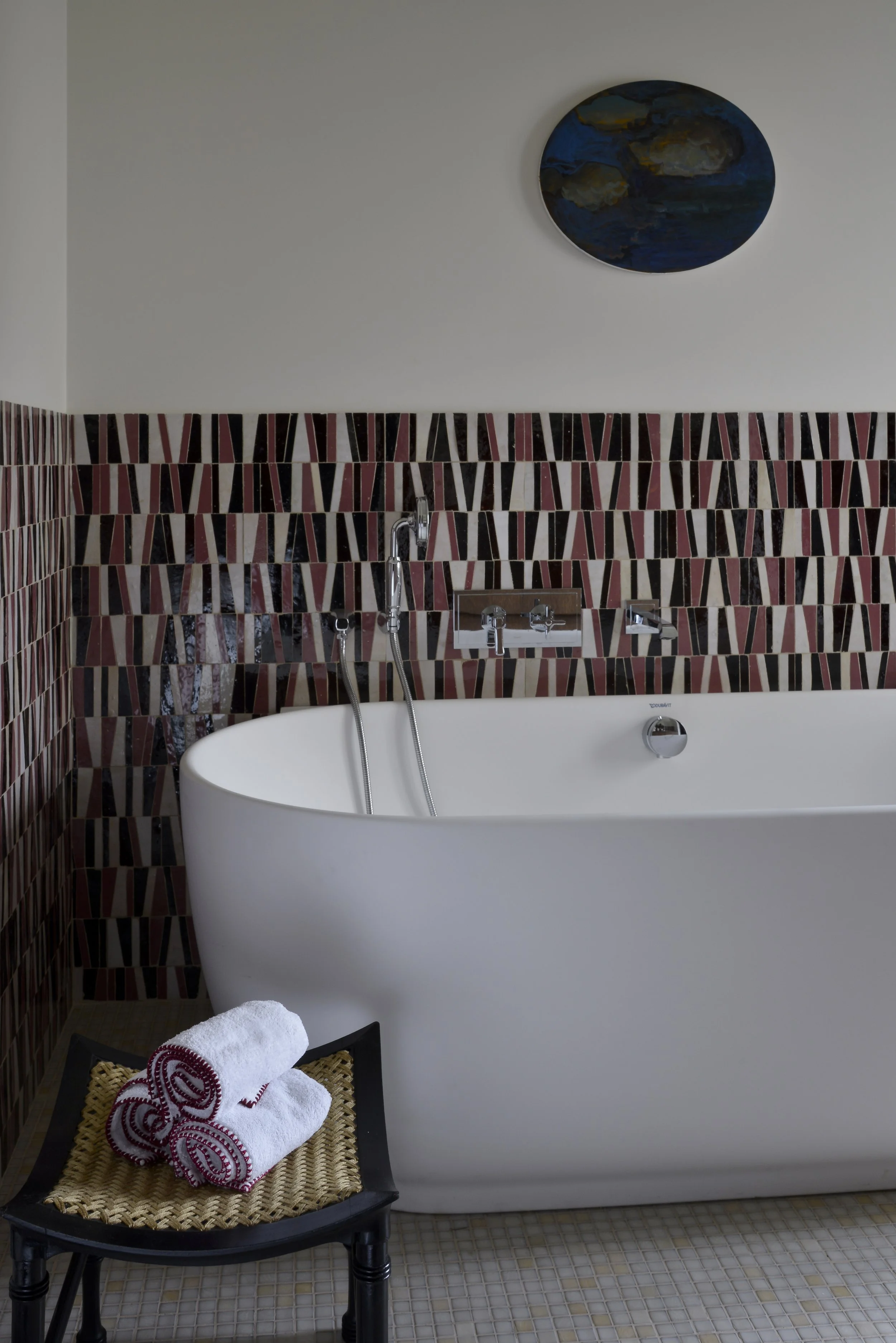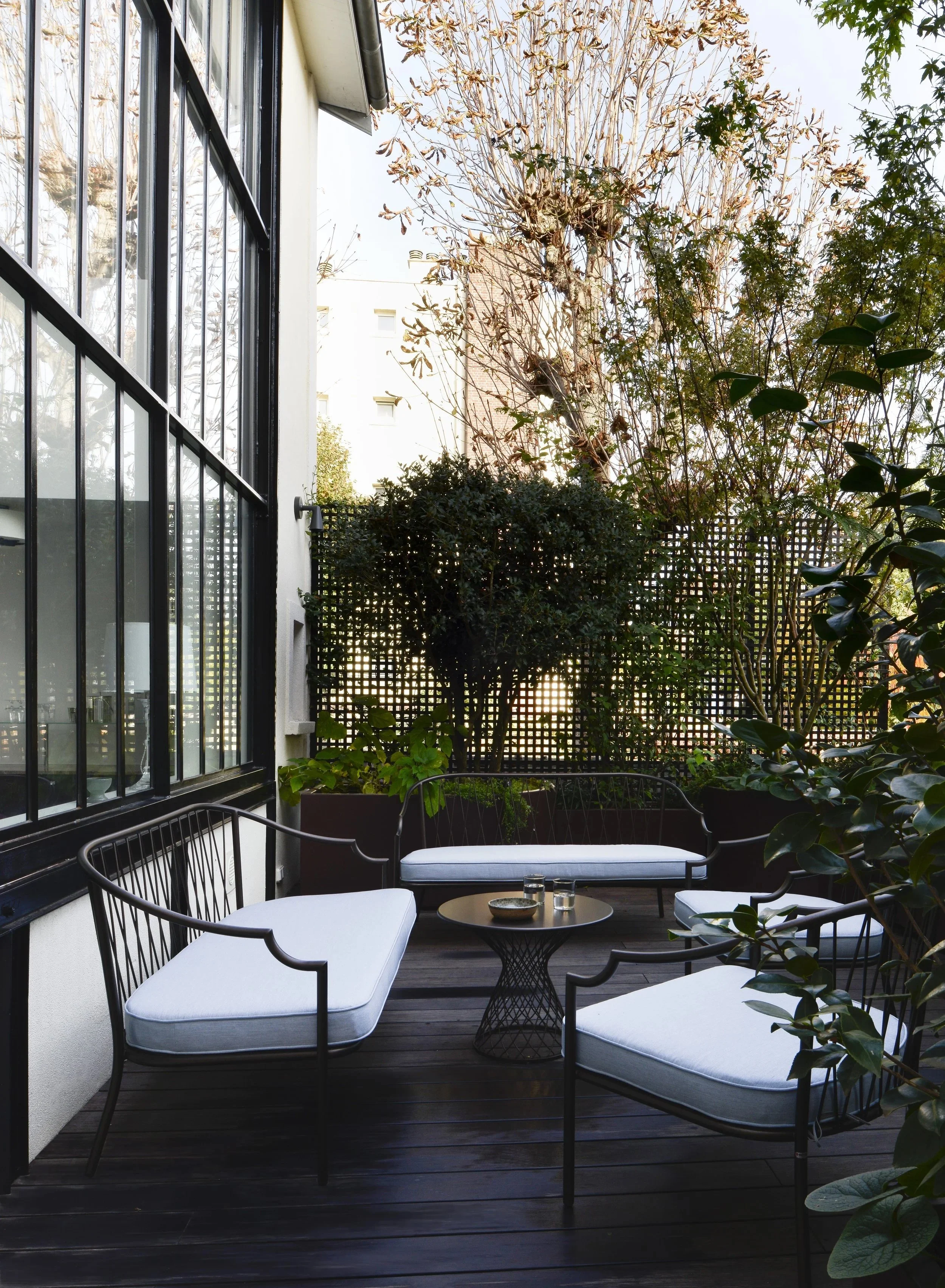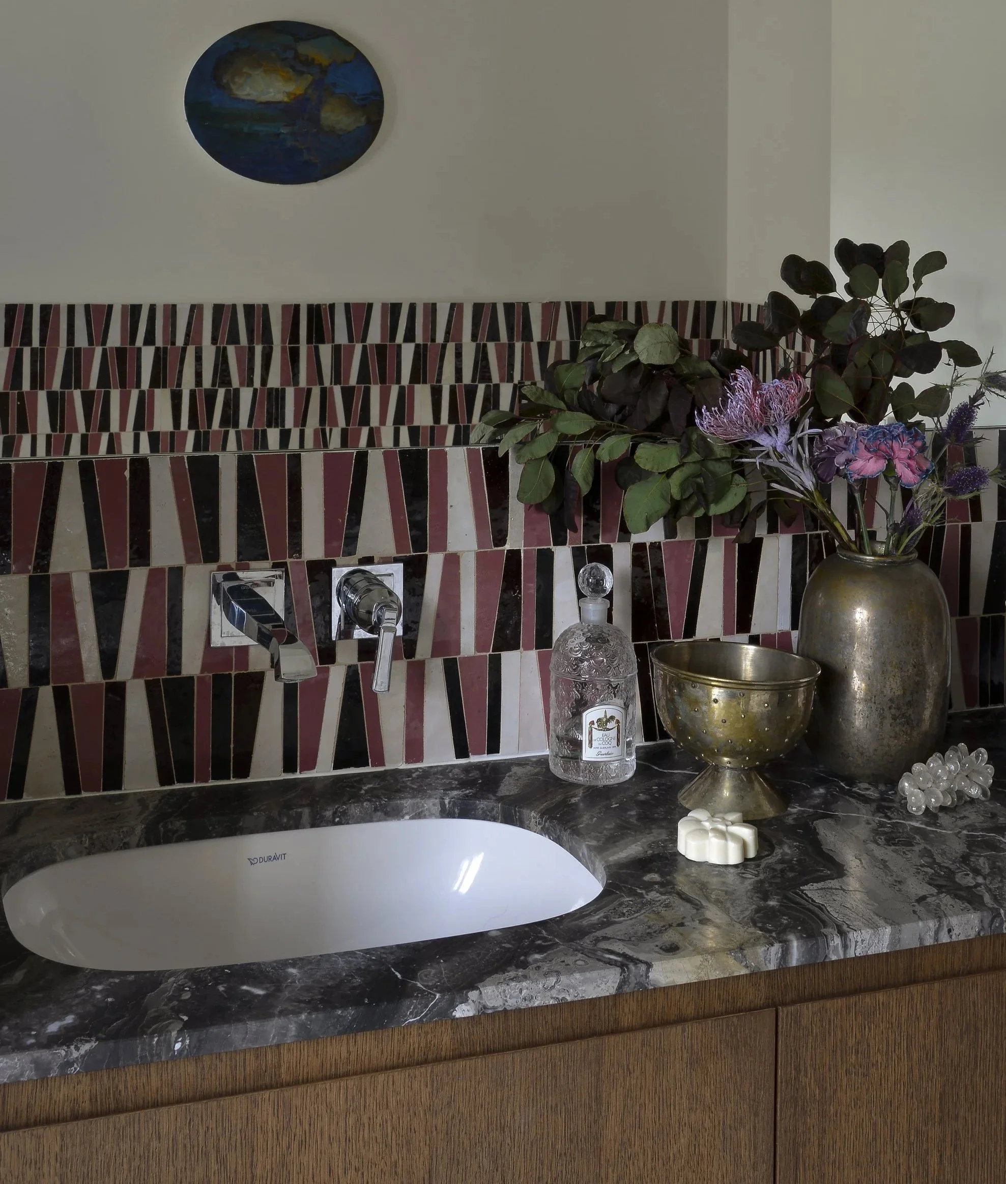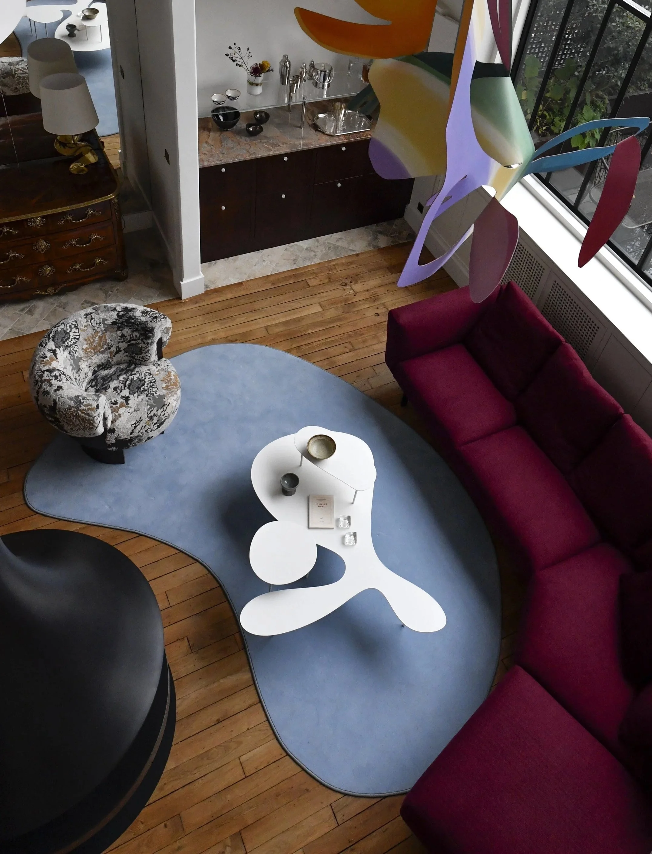 À deux pas de la capitale, cette maison de ville fut un atelier d’artiste. En témoigne cette majestueuse verrière qui apporte une lumière douce tout au long de l’année. Dans cette rénovation d’ampleur, nous avons porté une attention particulière à remodeler les volumes singuliers de cette maison: créer des points de vue entre les différents niveaux, repenser les coursives, générer des plans successifs d’un espace à un autre où le regard pourra vagabonder. L’emploi de la couleur a été l’un des prismes pour soutenir cela, à l’image de la palette d’un peintre entre touches et grands aplats.